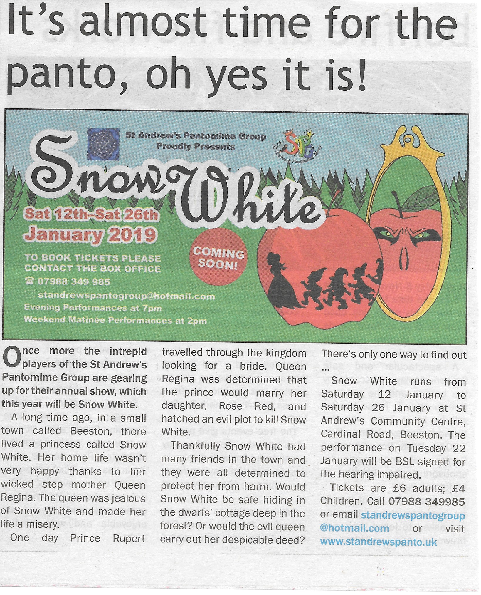 The Fairest Panto of them all – Snow White is coming soon …
